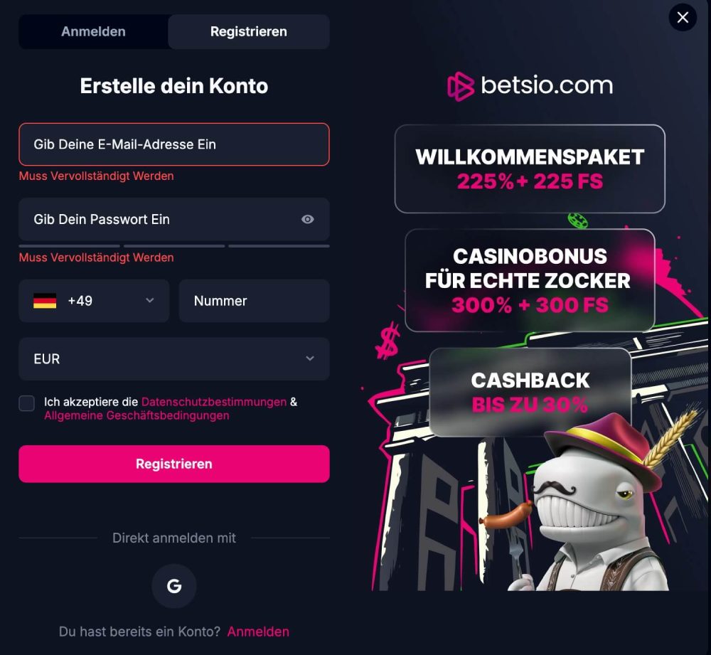 Wie funktioniert die Registrierung bei Betsio.com?
