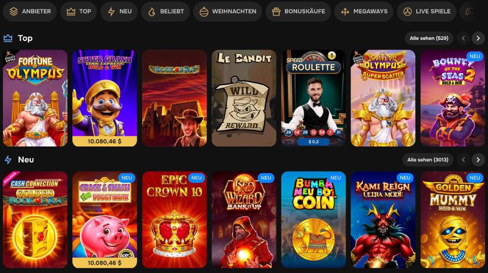 MrPunter bietet eine umfangreiche Spielauswahl mit über 10.000 Slots, Jackpots, klassischen Tischspielen und Live-Spielen.