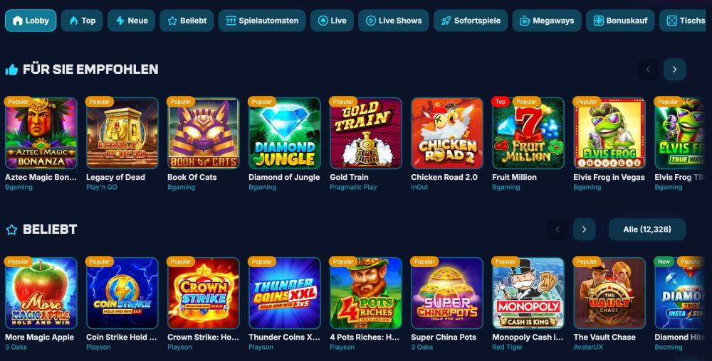 Spielauswahl, Bonusaktionen, Kassenbereich und Live-Chat sind so platziert, dass Du sie mit einem Klick erreichst. Nach meiner Registrierung konnte ich ohne Umwege loslegen.